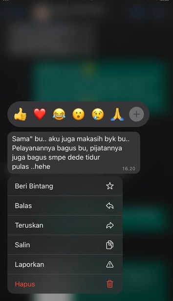 Pijat seluruh tubuh, totok wajah dan masker cokelat, pijat Akupresur laktasi dan oksitosin untuk melancarkan ASI,